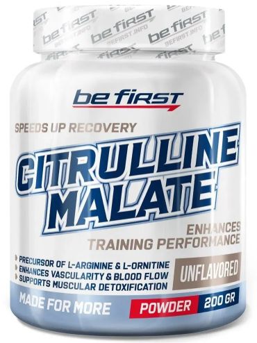 В то же время Citrulline Malate powder от Be First имеет и другие действия. В частности, он не только повышает продукцию оксида азота, но и блокирует ферменты, расщепляющие его, поэтому он более эффективен, чем аргинин.