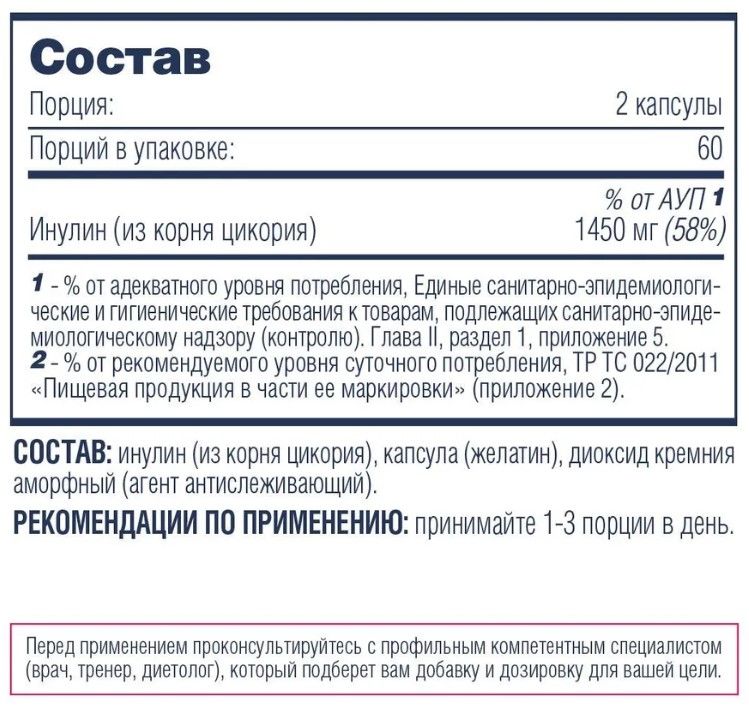 Для нормального пищеварения человеку нужны не только белки, жиры, углеводы и витамины, но и пищевые волокна, увеличивающие объем пищевого комка и облегчающие перистальтику пищеварительного тракта. Поэтому для сохранения здоровья органов пищеварения, а значит и нормального обмена веществ, рекомендуют поддерживать в рационе оптимальное количество клетчатки (пищевых волокон). А поскольку этого компонента в обычных продуктах питания часто оказывается недостаточно, необходимо применять для этой цели пищевые добавки, такие как инулин.