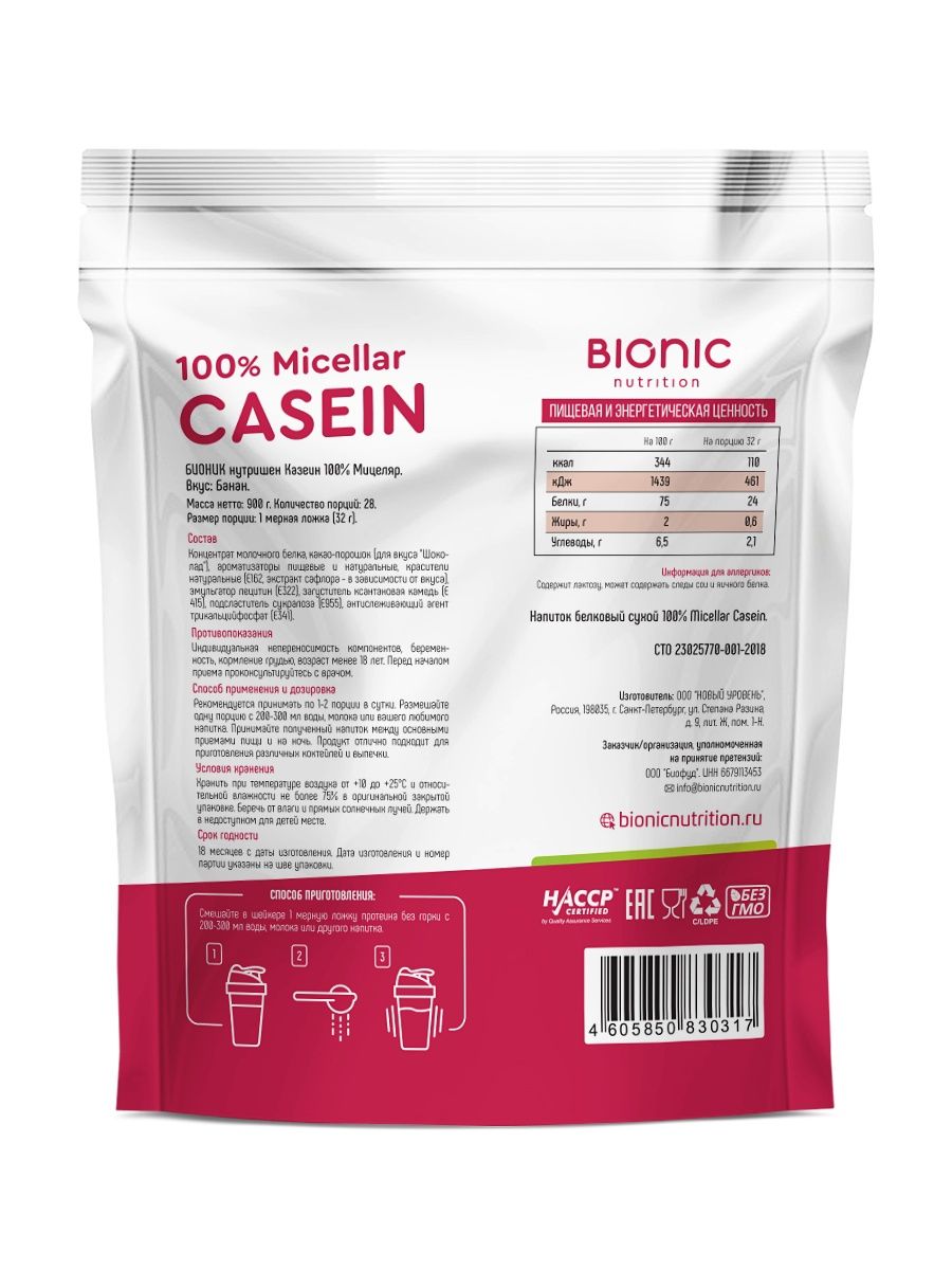 Bionic Nutrition Casein, 900 гр.