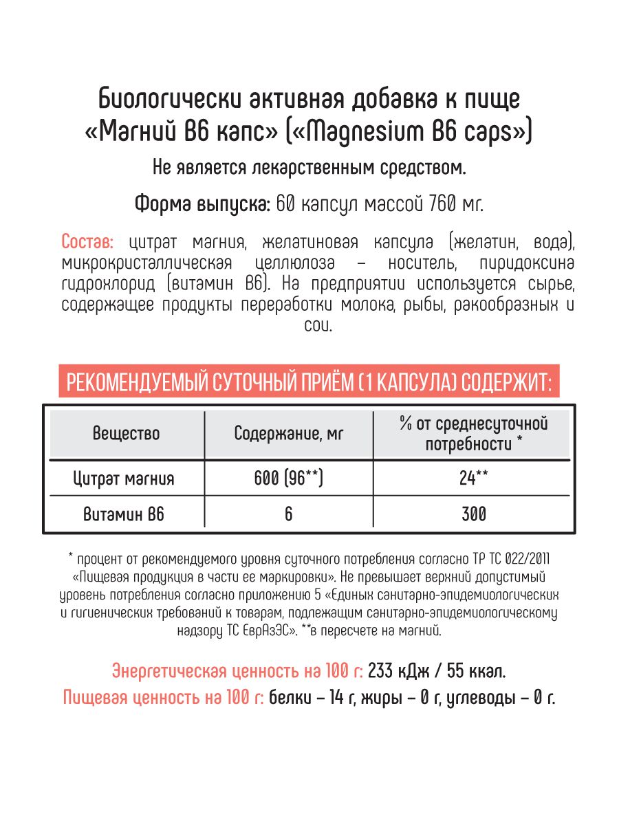 670 мг магния и 2 мг витамина B6 в каждой порции