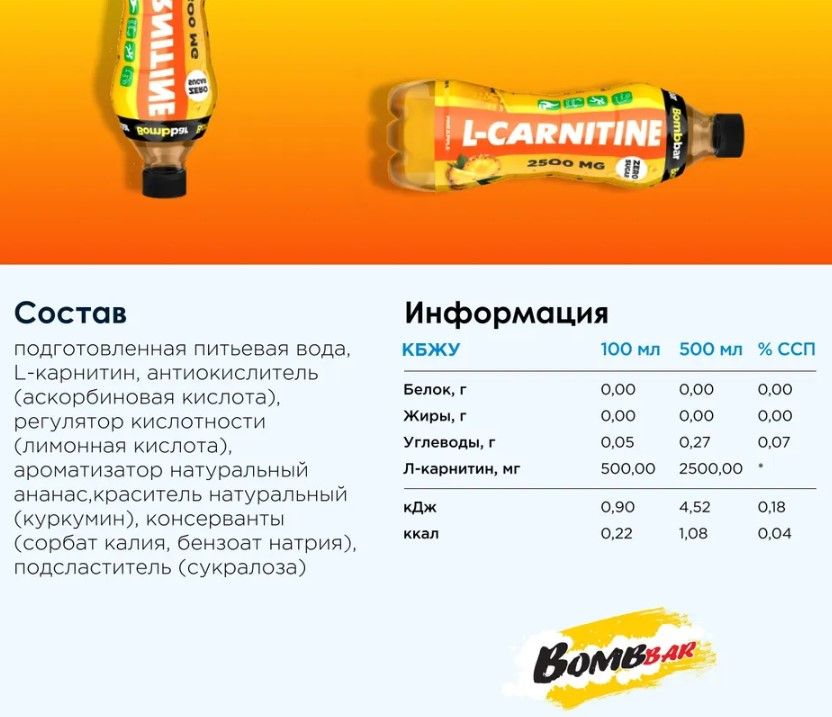 Bombbar Напиток L-carnitine, 500 мл.