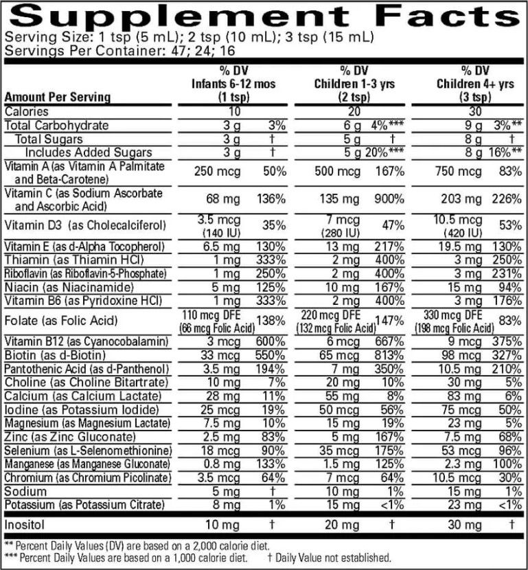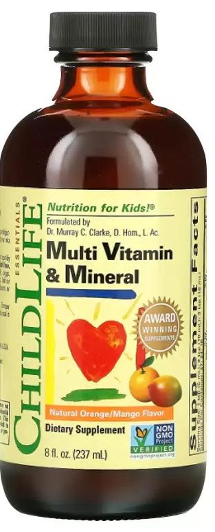 ChildLife Multi Vitamin & Mineral 237 ml — это комплексная жидкая добавка, специально разработанная для обеспечения детей всеми необходимыми витаминами и минералами для поддержания их здоровья и правильного развития. Эта формула содержит ключевые питательные вещества, включая витамины A, C, D, E и группы B, а также важные минералы, такие как кальций, магний и цинк. Продукт создан с учетом потребностей растущего организма и помогает восполнить пробелы в питании, поддерживая иммунитет, здоровье костей, развитие мозга и общее самочувствие ребенка.