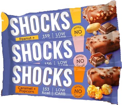 Вы не представляете свою жизнь без сладостей, но стремитесь есть поменьше сахара и всего вредного? Тогда новый батончик SHOCKS Шоколадный точно для вас. В нем нет сахара, трансжиров и прочих вредных добавок.