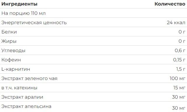 Дает мощный заряд энергии, усиливает высвобождение жира из жировых клеток и ускоряет пищеварение. Оказывает психостимулирующее действие во время тренировок.