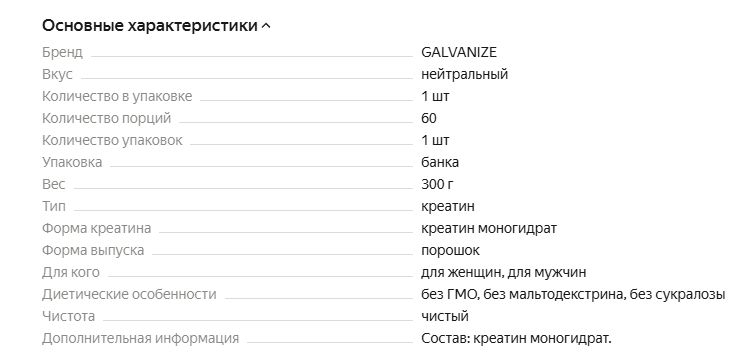 Характеристики товара