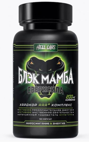 Hell Labs Black Mamba 90 caps – это отечественный аналог всемирно известного жиросжагателя Innovative Labs Black Mamba, но полностью с разрешенными компонентами в составе, которые проходят любой допинг-контроль.