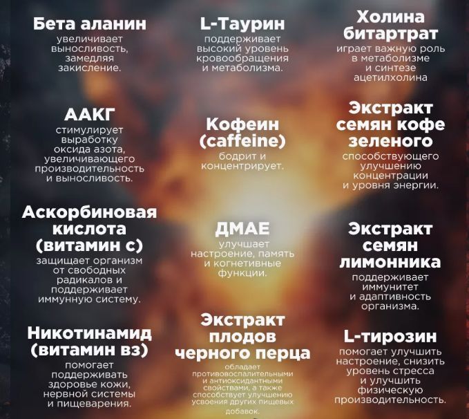 Не смотря на то, что Пополам - это предтрен без герани, он отлично стимулирует на силовую и интенсивную работу. В составе порошкового предтрена только проверенные временем компоненты: бета-аланин, l-таурин, l-аргинин альфа-кетоглутарат (аакг), холина битартрат (витамин в4), мальтодекстрин, кофеин, экстракт семян зеленого кофе, аскорбиновую кислоту (витамин с), диметиламиноэтанол, экстракт семян лимонника, l -тирозин, никотинамид (витамин вз).