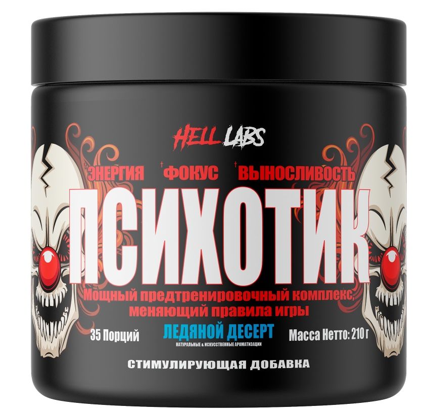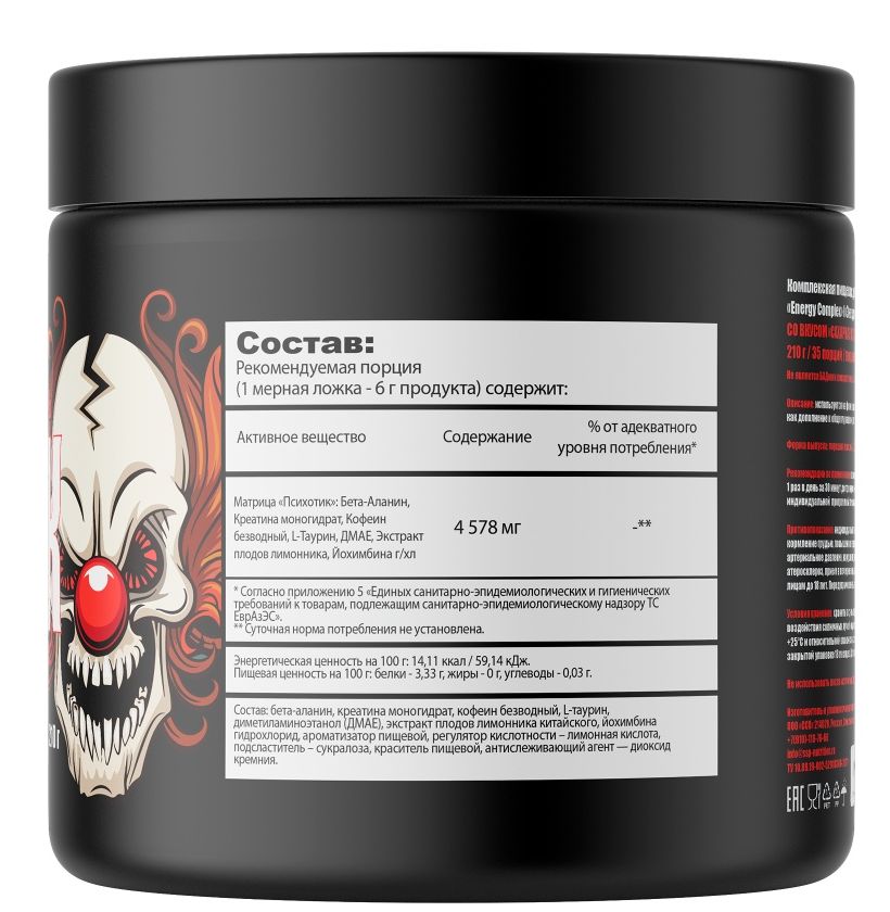 Предтренировочный комплекс Psychotic - даёт мощный выброс энергии, фокусировки и эйфории в течении 3 часов.
