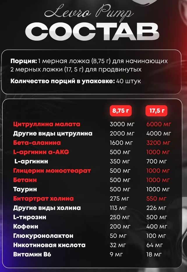 Если вы стремитесь к максимальным результатам в спорте, то предтренировочный комплекс Кевин Леврон Левро Памп — это именно то, что вам нужно. Эта добавка создана для активных мужчин и женщин, которые хотят повысить свою силу и выносливость во время тренировок. Благодаря уникальной формуле, основанной на современных научных разработках, вы получите мощный заряд энергии и необходимую поддержку для достижения новых высот.