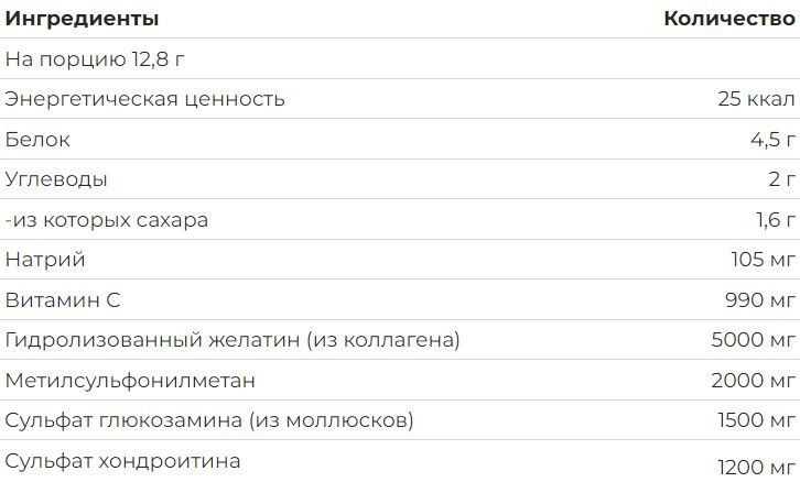Гидролизованный желатин – обеспечивает подпитку организма коллагеном, который является основным структурным компонентом соединительной ткани и содержится в коже, связках, хрящах, межпозвоночных дисках, стенках сосудов, а также костях и зубах;