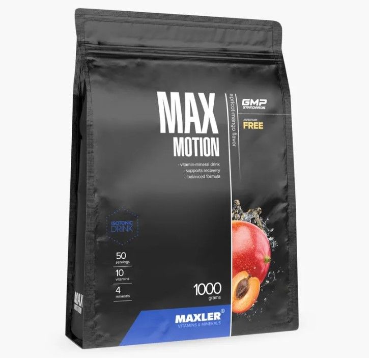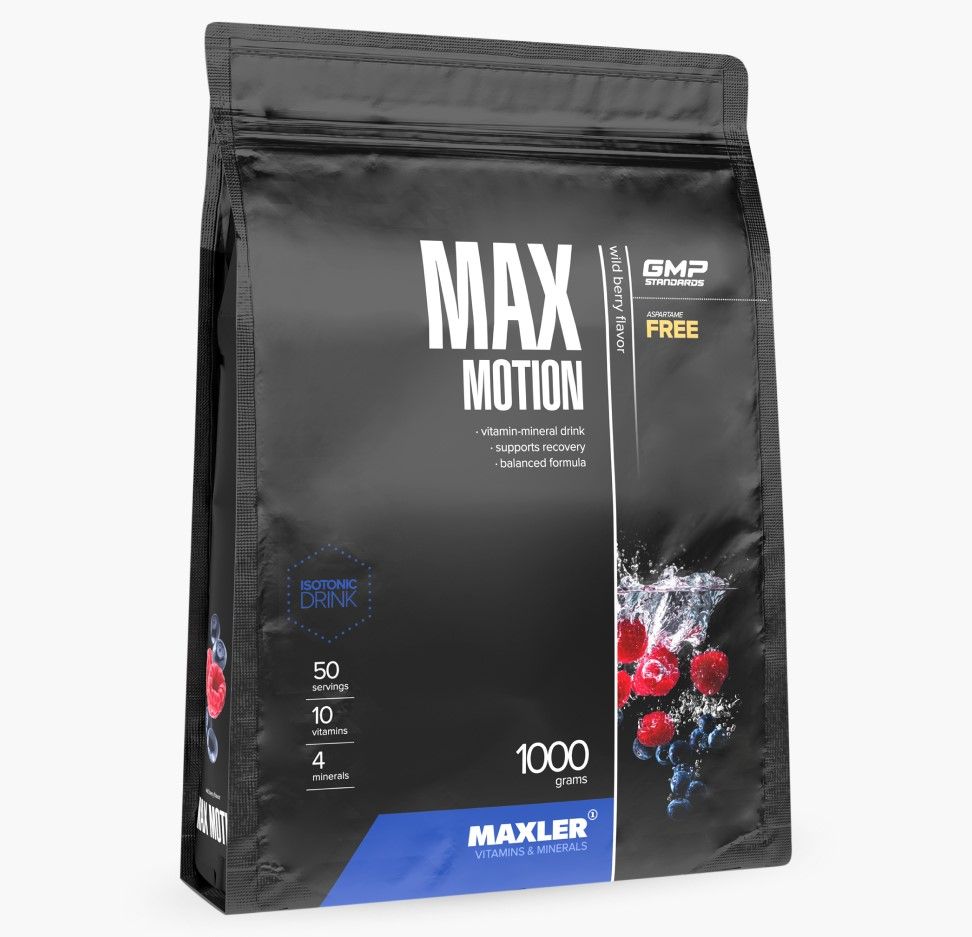 В условиях интенсивных тренировок организм с потом теряет не только жидкость, но и необходимые для его работы минералы и микроэлементы. Для своевременного восполнения их потерь можно использовать комплекс для приготовления изотонического напитка Max Motion от Maxler. В его составе есть важные для функционирования каждого органа витамины и минералы, а также простые углеводы, которые служат быстрым источником энергии.