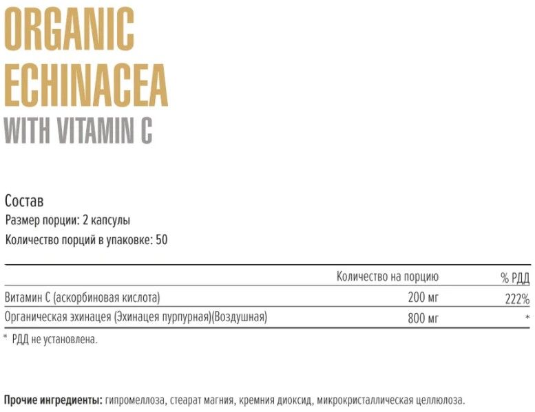 Maxler Organic Echinacea with Vit C – это эффективная добавка для укрепления иммунной системы и поддержания здоровья, благодаря своему органическому составу и мощным свойствам активных ингредиентов.