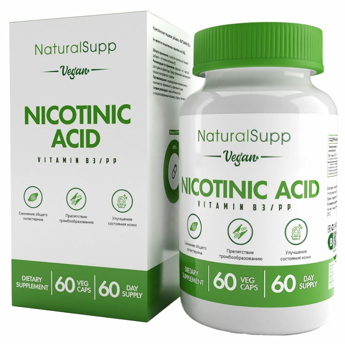 NaturalSupp Никотинамид Витамин В3 - это надежное средство для поддержания здоровья кожи, нервной системы и общего уровня энергии, обеспечивая комплексную поддержку вашему организму.