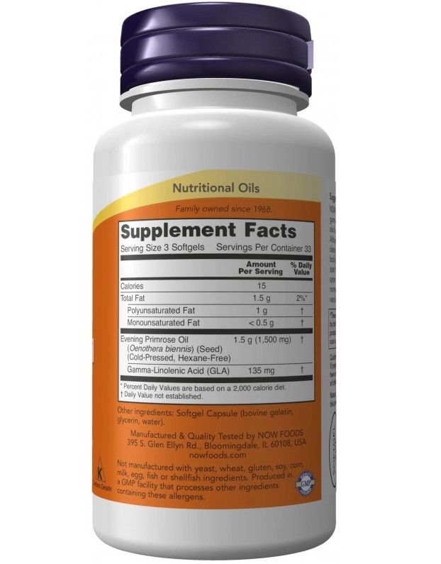 NOW Evening Primrose Oil 500 mg — это высококачественная пищевая добавка, содержащая масло вечерней примулы, богатое гамма-линоленовой кислотой (GLA). GLA — это незаменимая жирная кислота, которая играет важную роль в поддержании здоровья кожи, гормонального баланса и работы сердечно-сосудистой системы.