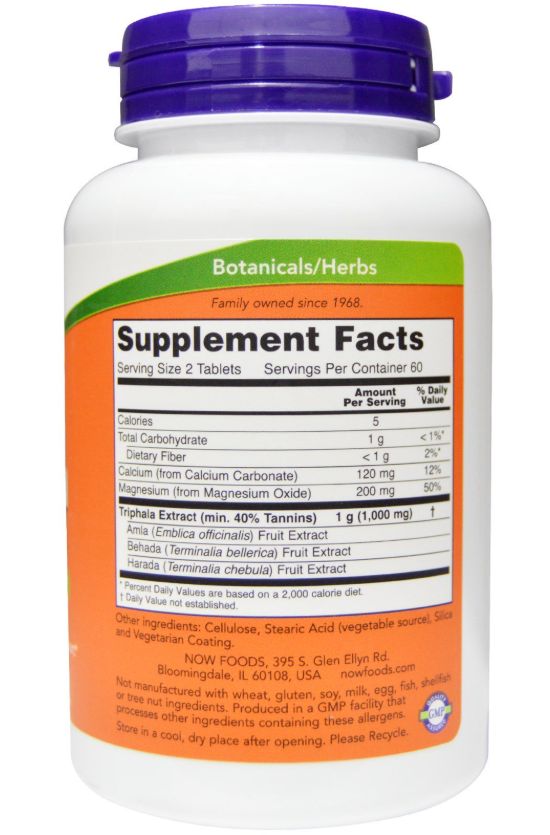 3 таблетки NOW Triphala– Трифала содержат: