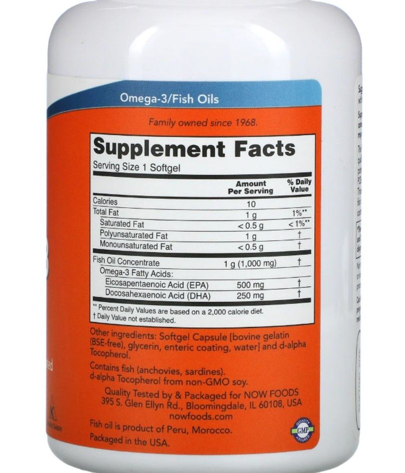 NOW Ultra Omega-3 — это высококонцентрированная добавка омега-3, содержащая масла рыбы с высоким содержанием EPA (эйкозапентаеновой кислоты) и DHA (докозагексаеновой кислоты). Эти омега-3 жирные кислоты известны своими многочисленными преимуществами для здоровья. Каждая мягкая капсула обеспечивает мощное поддержание сердечно-сосудистой системы, функции мозга и общего состояния организма.