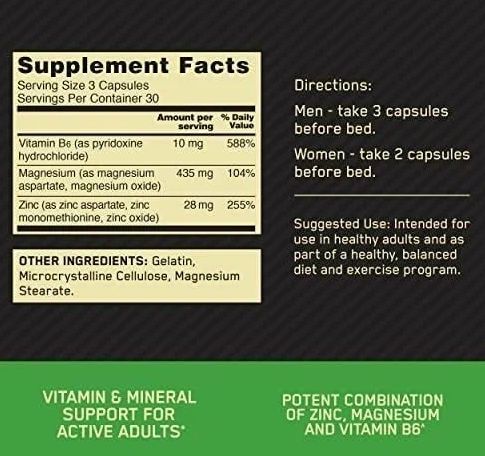 В основе формулы лежит комбинация цинка, высококачественного магния аспартата, а также витамина В6, благодаря которому увеличивается выносливость, восстановление, рост, а также данная добавка способствует спокойному сну.