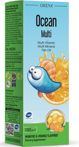 Ocean Multi-это пищевая добавка, разработанная для детей. Orzax Multi содержит 11 витаминов, 5 минералов и омега3. Орзакс Multi не содержит красителей, подсластителей, искусственных ароматизаторов. Омега-3 в составе Мультивитамин получают из масел для тела рыб мелких пород, живущих в чистых и холодных водах, вдали от тяжелых металлов. Омега 3 витамин C Витамин B3 Витамин E Цинк Витамин B5 Витамин B2 Витамин B6 Витамин B1 Марганец Витамин A Фолиевая кислота Йод Селен Молибден Витамин D3 Витамин B12 Гарантия качества и содержания омега 3 в сиропе анализируется в соответствии с Международными стандартами рыбьего жира (IFOS). Детский сироп был удостоен награды "Выдающийся вкус" золотой медали Международного института вкуса и золотой награды Сингапурских премий Taste Awards и премии America Taste Awards.Сироп омега3+витамины - отлично зарекомендовал себя как средство от простуды и укрепления иммунитета. Покупайте только качественные витамины, а Орзакс вам в этом поможет!