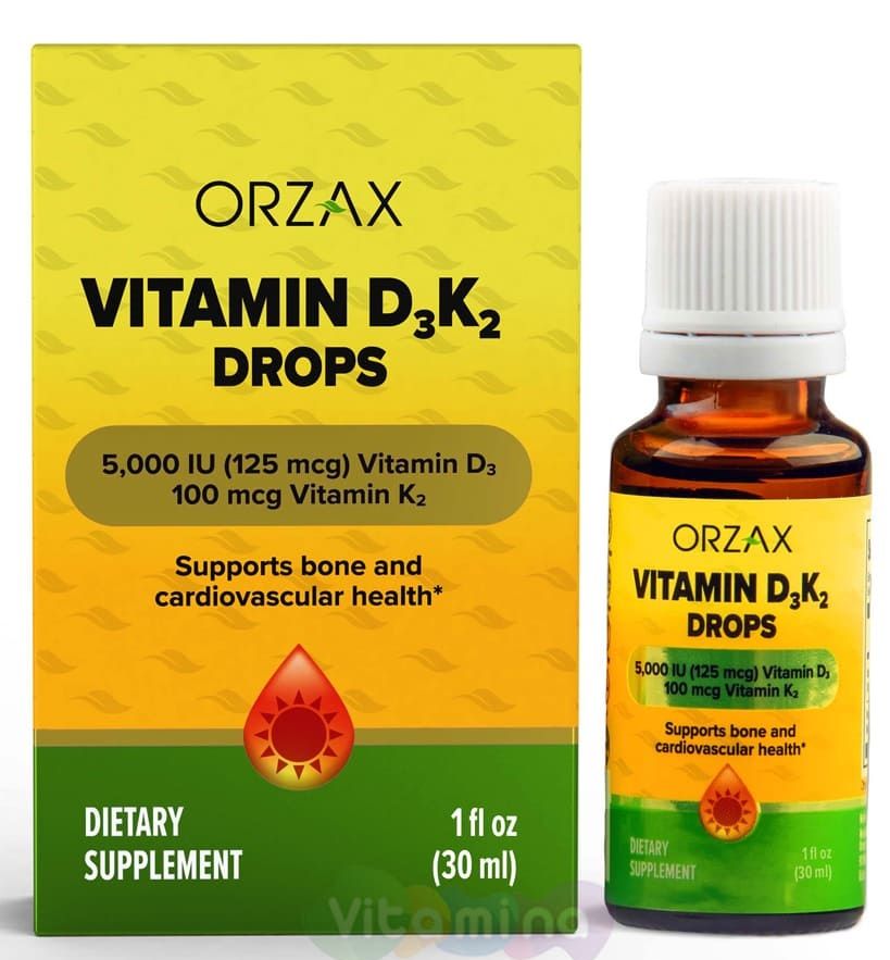 ПОМОГАЕТ УКРЕПИТЬ КОСТИ : капли Orzax Vitamin D3 K2 помогают увеличить усвоение кальция, необходимого для укрепления зубов и костей. Поглощенный кальций обеспечивает крепкие кости и улучшает общую мышечную силу.