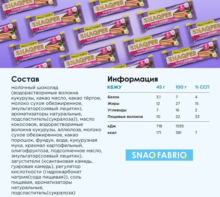 Snaq Fabriq Батончик Вафельный Snaqfer, 45 гр.