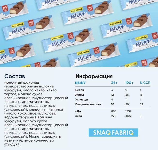 Snaq Fabriq Молочный шоколад со сливочной начинкой, 34 гр.