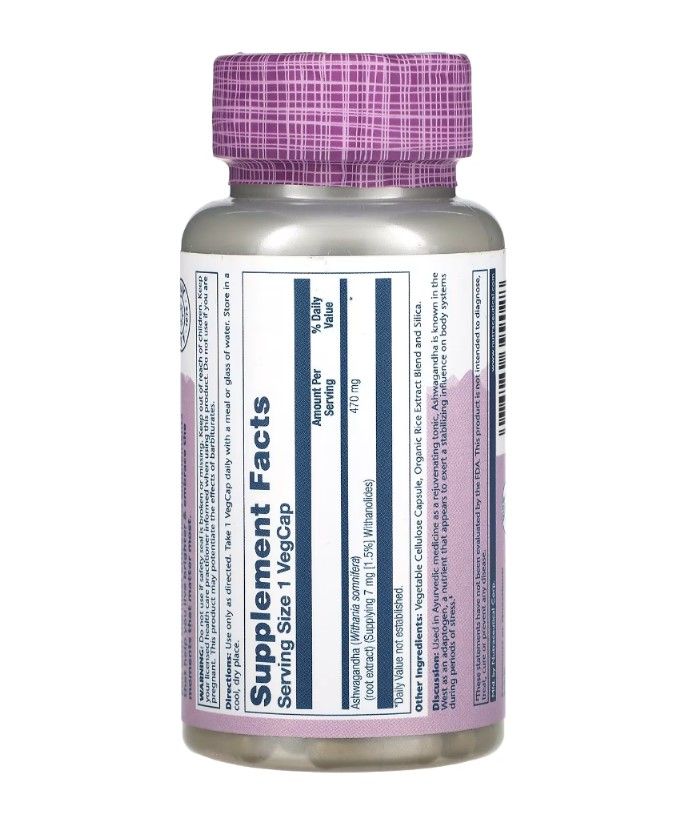 Ashwagandha Root Extract 470 мг (Ашваганда) от Solaray – растительный адаптоген и иммуностимулятор. Повышает устойчивость организма к стрессу, высоким физическим и умственным нагрузкам, вредоносным микроорганизмам. Оказывает противовоспалительное действие. Бад помогает при хронической усталости, нарушениях сна, депрессивных состояниях, неврозе, частых простудах, расстройствах мужской и женской репродуктивной функции.