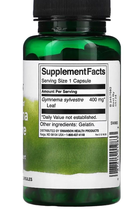 Этот натуральный БАД от американского бренда Swanson Health Products создан на основе экстракта листьев джимнемы сильвестры — растения, известного своими свойствами поддерживать баланс уровня сахара в крови. Активный компонент джимнемовая кислота помогает снизить тягу к сладкому, улучшая самоконтроль при питании.
