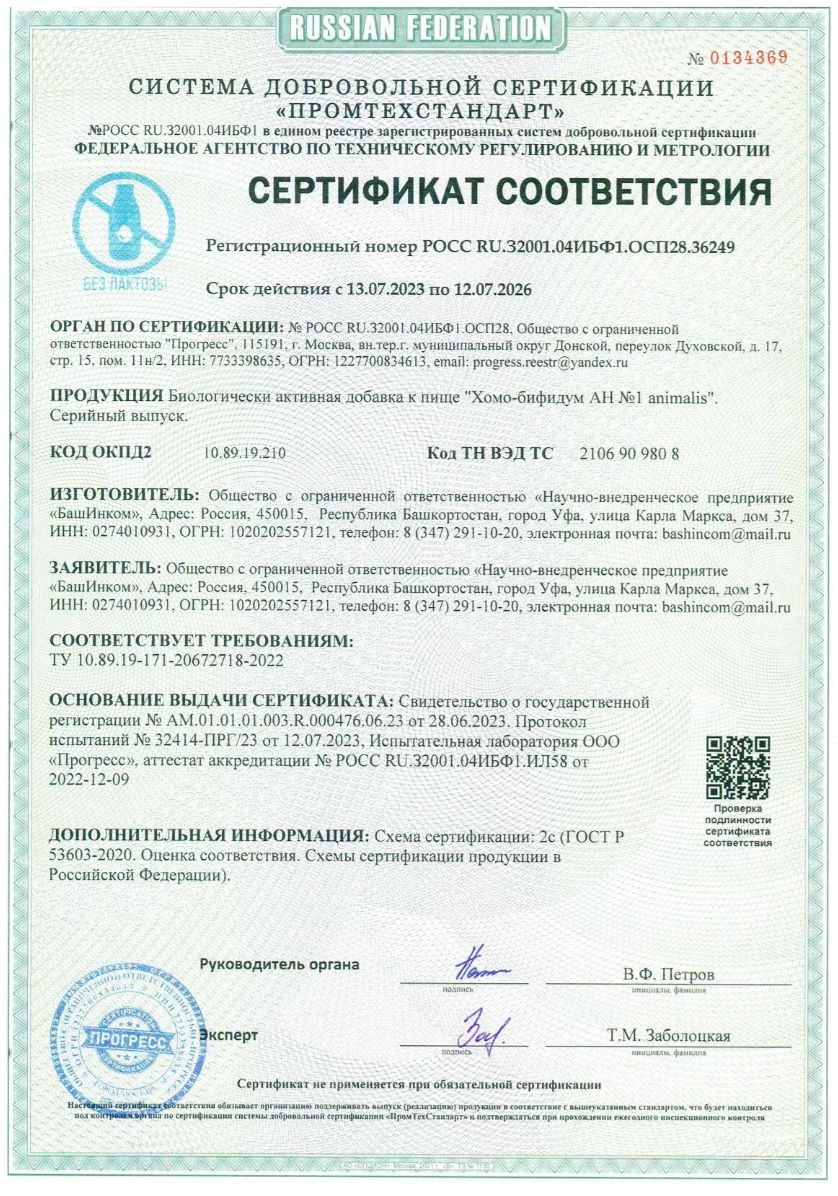 Башинком Хомо-Бифидум АН №1 ANIMALIS, 400 мл.